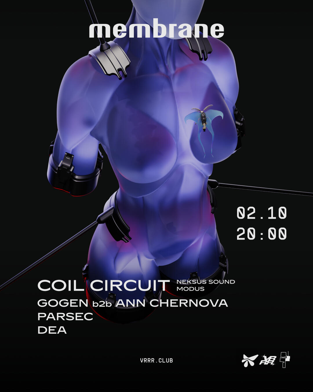 Membrane 2 | Четверг, 2 октября, 20:00 по МСК, метро Курская, клуб M² (https://t.me/m2mosc0w)Вторая вечеринка серии Membrane в Москве. Хедлайнером вечера станет сoil сircuit (https://t.me/coilcircuit) — резидент лейблов Neksus Sound и MODUS родом из ЧелябинскаКроме того свой сет отыграет дуэт: Gogen — владелец лейбла QABEZ (https://t.me/qabezfryazino) и продюсер, back to back с диджеем Ann Chernova