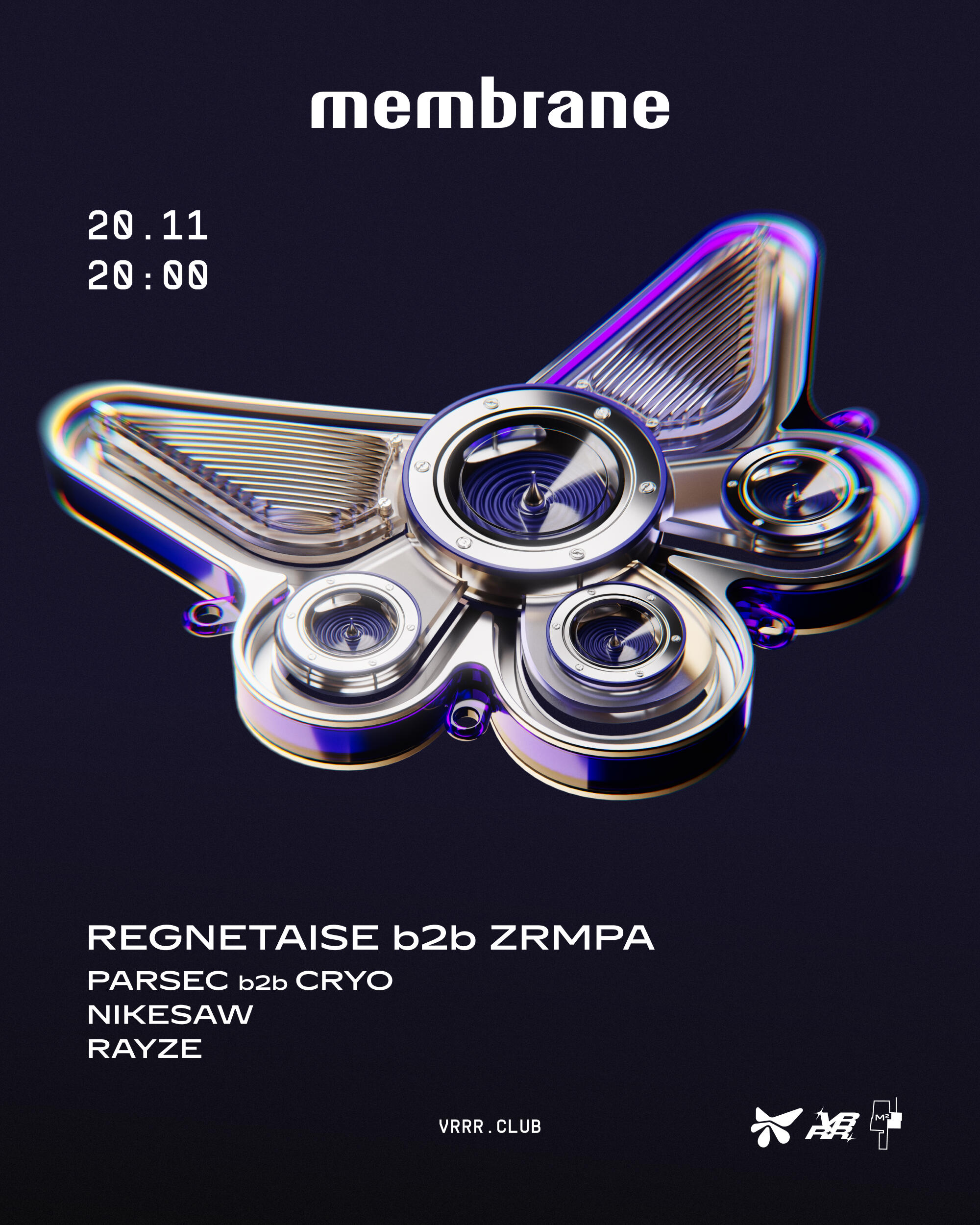 Двери открыты 20:00 — 00:00Стикер с логотипом membrane для гостей в подарокhttps://vrrr.club
